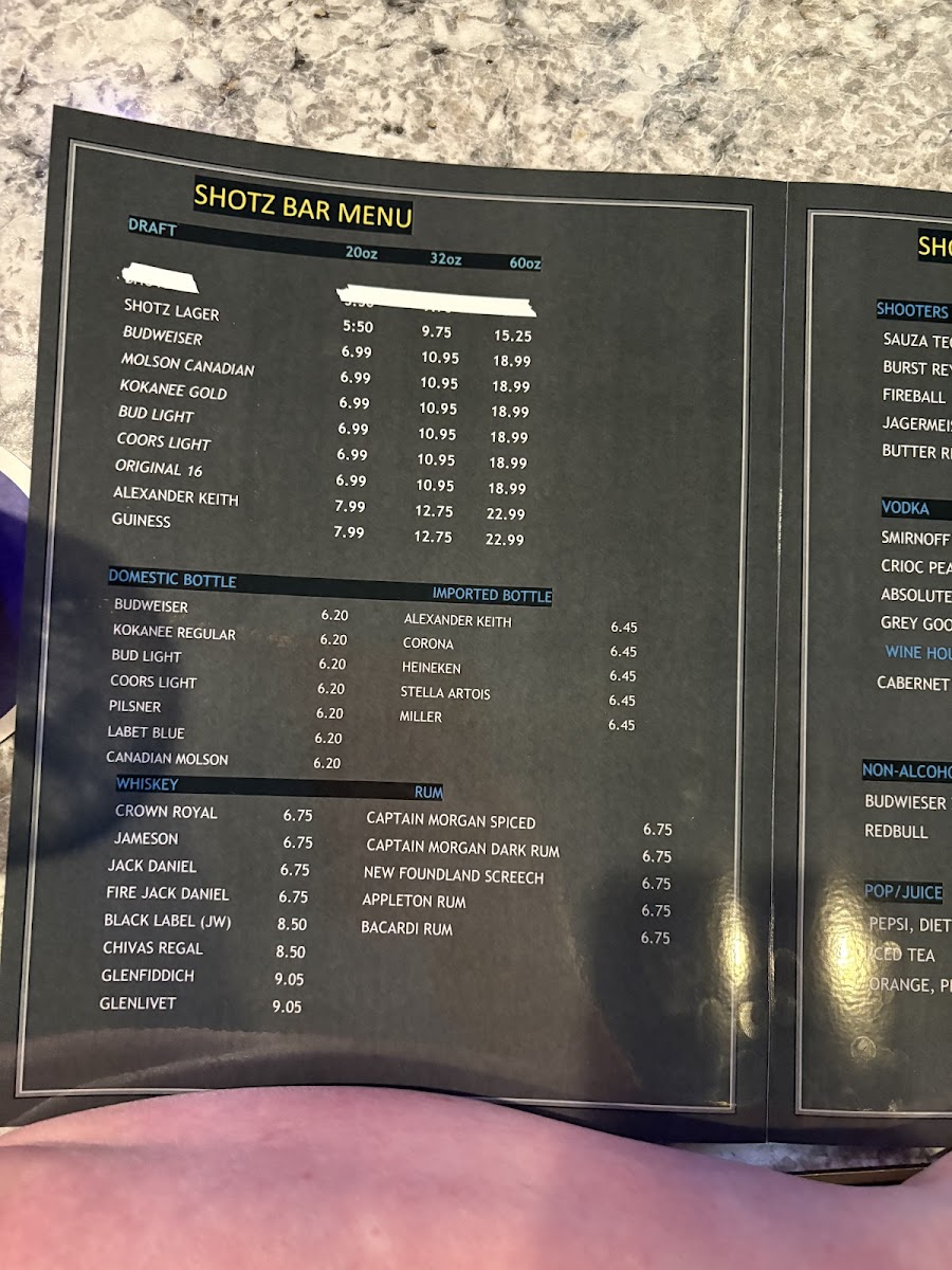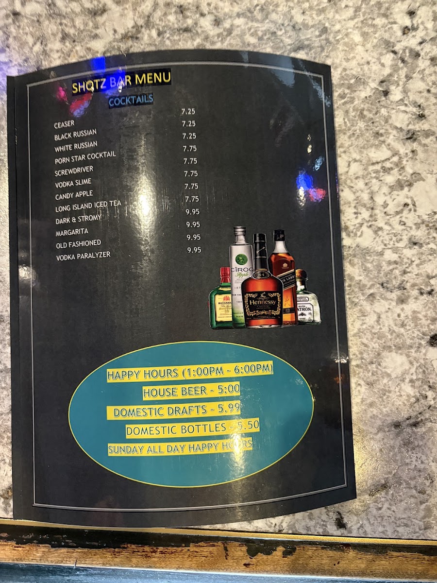 Shotz Bar & Grill Menu